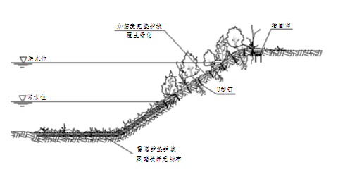 柔性生態(tài)護岸技術(shù)主要是采用自然材料來(lái)形成一種“可滲透性”的界面,其方式包括采用雙絞合金屬網(wǎng)柔性網(wǎng)墊網(wǎng)箱結構以及采用加筋生態(tài)網(wǎng)結構,是一種既能符合防沖護岸要求,又適合綠色植被在上面生長(cháng)的新型生態(tài)護岸技術(shù)。