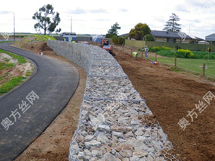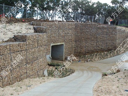 石籠擋土墻:是將符合粒徑要求的石料填入具有柔性的石籠網(wǎng)中達到一定的孔隙率、逐層砌筑的一種新型的柔性擋土構筑物。石籠擋土墻適用于受水流沖刷和風(fēng)浪侵襲,且防護工程基礎不易處理或沿河擋土墻、坡腳基礎局部沖刷深度過(guò)大的沿河路堤坡腳或護岸。石籠擋土墻在國外的道路工程中已廣泛應用。例如,美國加利福尼亞州1號公路蒙特利的擋土墻,意大利Arezzo省SS556石籠擋土墻,加拿大安大略省用來(lái)支撐路側切坡的石籠擋土墻,以及法國、德國、挪威、瑞士、英國等都將這種石籠擋土墻結構應用于河道護坡、土體支擋、橋臺修筑等。
