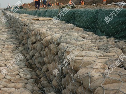 五擰石籠網(wǎng)屬柔性結構,對于不均勻沉陷自我調整性佳。岸面多孔性,石材間之縫隙利于動(dòng)物棲息,植物生長(cháng),水線(xiàn)以上之石籠面可利用客土袋植生綠化符合生態(tài)的考量及安全的要求。五擰花石籠網(wǎng)是金屬線(xiàn)材編織的角形網(wǎng)(六角網(wǎng))制成的網(wǎng)箱,使用的金屬線(xiàn)徑是根據六角形的大小而不同。如果是金屬鍍層的金屬線(xiàn),則使用線(xiàn)徑為2.0mm到4.0mm的金屬線(xiàn),如果是PVC包覆的金屬線(xiàn)編織的六角網(wǎng),則使用外徑為3.0mm到4.5mm的PVC(金屬)線(xiàn).外框邊緣的線(xiàn)則使用比六角網(wǎng)線(xiàn)粗一號的線(xiàn)。