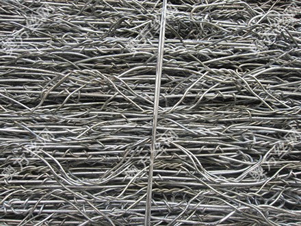 (2)鋅-5%鋁-混合稀土合金鋼絲:(也叫高爾凡)鋼絲,這是一種近年來(lái)國際新興的一種材料,耐腐蝕性是傳統純鍍鋅的3倍以上,鋼絲的直徑可達2.0MM-4.0MM,鋼絲的抗拉強度550pa/mm2。
