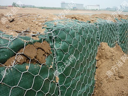 2.PVC鋅-5%鋁-混合稀土合金鋼絲:在鋅-5%鋁-混合稀土合金鋼絲的表面涂裝PVC保護層,然后編織成六角鐵絲網(wǎng)。這層PVC保護層將會(huì )大大增加在高污染環(huán)境中的保護,并且通過(guò)不同顏色的選擇,使其能和周?chē)h(huán)境融合。