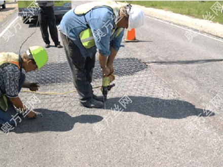 ·在現有路面上放置并且保護路面加筋網(wǎng)