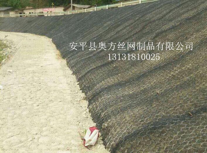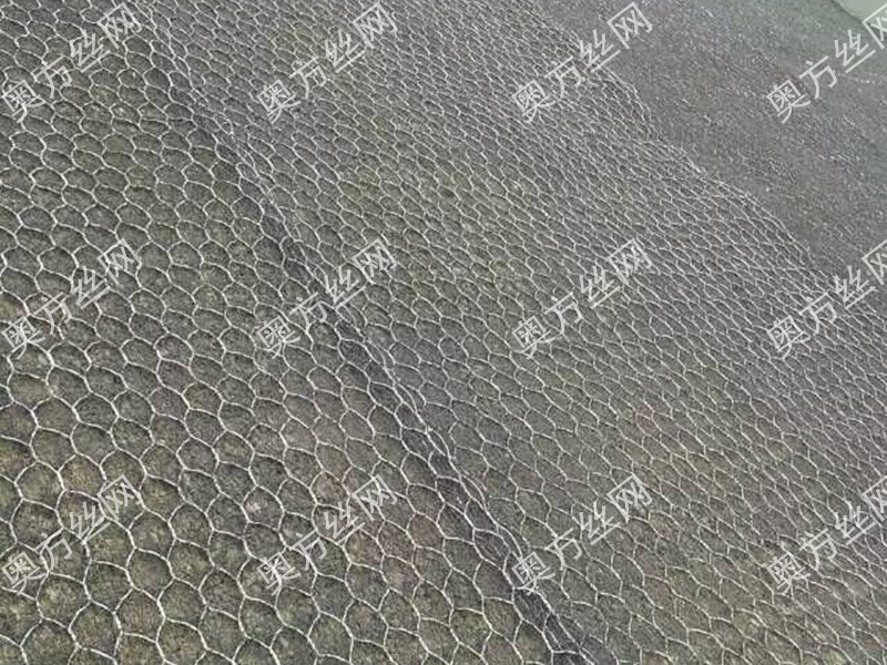 由相鄰兩根網(wǎng)絲經(jīng)過(guò)雙絞合后,再與左右進(jìn)行形成的六邊形鋼絲網(wǎng)面。