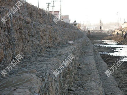 五擰石籠網(wǎng)屬柔性結構,對于不均勻沉陷自我調整性佳。岸面多孔性,石材間之縫隙利于動(dòng)物棲息,植物生長(cháng),水線(xiàn)以上之石籠面可利用客土袋植生綠化符合生態(tài)的考量及安全的要求。五擰花石籠網(wǎng)是金屬線(xiàn)材編織的角形網(wǎng)(六角網(wǎng))制成的網(wǎng)箱,使用的金屬線(xiàn)徑是根據六角形的大小而不同。如果是金屬鍍層的金屬線(xiàn),則使用線(xiàn)徑為2.0mm到4.0mm的金屬線(xiàn),如果是PVC包覆的金屬線(xiàn)編織的六角網(wǎng),則使用外徑為3.0mm到4.5mm的PVC(金屬)線(xiàn).外框邊緣的線(xiàn)則使用比六角網(wǎng)線(xiàn)粗一號的線(xiàn)。
