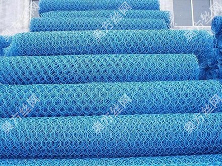 2.PVC鋅-5%鋁-混合稀土合金鋼絲:在鋅-5%鋁-混合稀土合金鋼絲的表面涂裝PVC保護層,然后編織成六角鐵絲網(wǎng)。這層PVC保護層將會(huì )大大增加在高污染環(huán)境中的保護,并且通過(guò)不同顏色的選擇,使其能和周?chē)h(huán)境融合。
