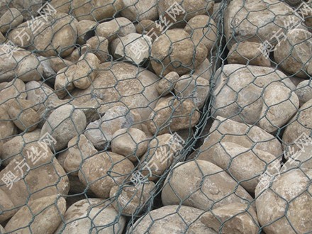 包塑石籠網(wǎng)是使用機器將金屬線(xiàn)材單向搓捻兩周編織的六角形網(wǎng)(六角網(wǎng)),又稱(chēng)石籠和護墊。鋼絲抗拉強度不小于38公斤/平方米,直徑可達2.0mm-4.0mm,表面通常還采用鍍鋅保護和PVC/PE涂層兩個(gè)大類(lèi),塑料涂層厚度大約在1mm左右。